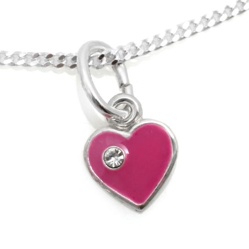 Mit einem emailliert rosa Herzchen (nicht hohl) mit einem Steinchen.